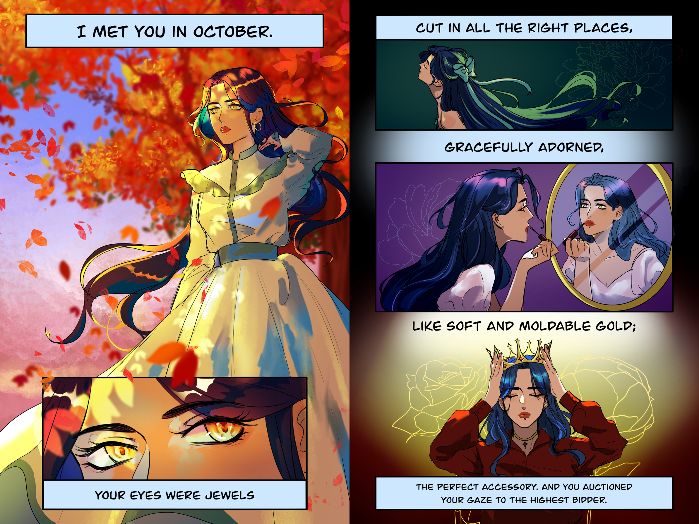 I’ve dipped my toes into a range of projects, including poetry, poster design, photography, social media marketing, website design, character design, and comic illustration.